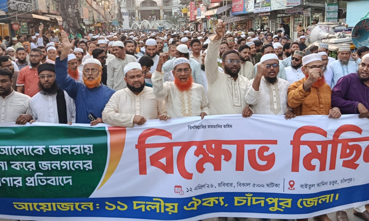 গণভোটের রায় বাস্তবায়নের দাবিতে চাঁদপুরে জামায়াত সহ ১১ দলীয় ঐক্যের বিক্ষোভ সমাবেশ ও মিছিল