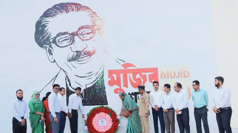 ১৭ মার্চ জাতির পিতা বঙ্গবন্ধু শেখ মুজিবুর রহমানের ১০৪তম জন্মবার্ষিকী ও জাতীয় শিশু দিবস ২০২৪ উপলক্ষে চাঁদপুর সরকারি কলেজ প্রাঙ্গনে চাঁদপুর জেলা প্রশাসন পক্ষ থেকে জাতির পিতা বঙ্গবন্ধু শেখ মুজিবুর রহমানের প্রতিকৃতিতে পুষ্পস্তবক অর্পণ করেন সমাজকল্যাণ মন্ত্রী ডা: দীপু মনি এমপি ও চাঁদপুর জেলা প্রশাসক কামরুল হাসান।