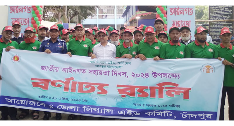 চাঁদপুর জেলা লিগ্যাল এইড কমিটি কর্তৃক আয়োজিত জাতীয় আইনগত সহায়তা দিবস-২০২৪ উপলক্ষে রোববার সকালে অনুষ্ঠিত হয় বর্ণাঢ্য র্যালী, লিগ্যাল এইড মেলা উদ্ধোধন. স্বাগত বক্তব্য এবং বিকেলে অনুষ্ঠিত হয় আলোচনা সভা এবং সাংস্কৃতিক অনুষ্ঠান।