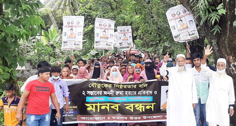 মতলব উত্তরে রুমার হত্যাকারীদের শাস্তির দাবিতে মানববন্ধন