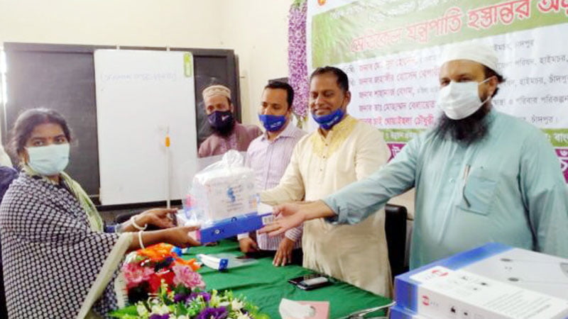 হাইমচরে কোভিড-১৯ সংক্রমণরোধে ক্লিনিকে মেডিকেল সরঞ্জাম হস্তান্তর