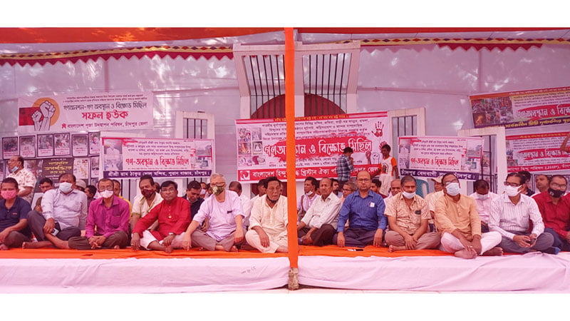 চাঁদপুরে হিন্দু-বৌদ্ধ-খ্রিস্টান ঐক্য পরিষদের গণঅবস্থান ও প্রতিবাদ সমাবেশ