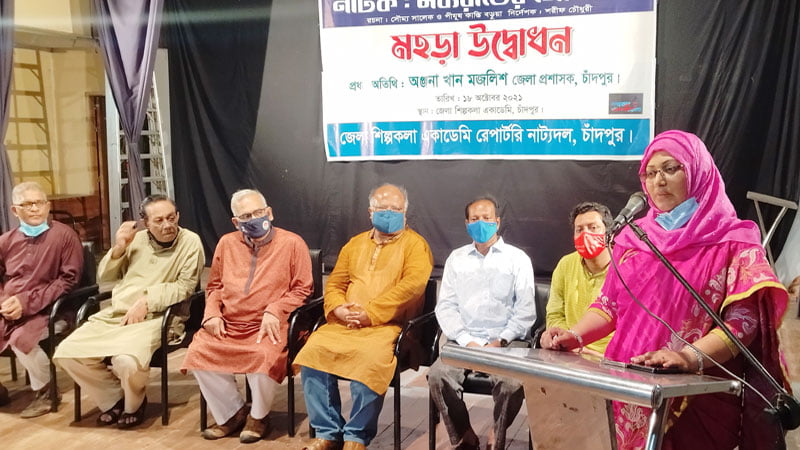 স্বাধীনতার সুবর্ণজয়ন্তী উপলক্ষে বাংলাদেশ শিল্পকলা একাডেমির আয়োজনে সারাদেশের ন্যায় চাঁদপুরেও পরিবেশ থিয়েটারে চাঁদপুরের গণহত্যার কাহিনী নিয়ে পরিবেশিত হবে নাটক ‘মধ্যরাতের মোলহেড’। গতকাল সোমবার বিকালে জেলা শিল্পকলা একাডেমিতে নাটকের মহড়ার আনুষ্ঠানিক উদ্বোধন করেন প্রধান অতিথি চাঁদপুরের জেলা প্রশাসক অঞ্জনা খান মজলিশ।