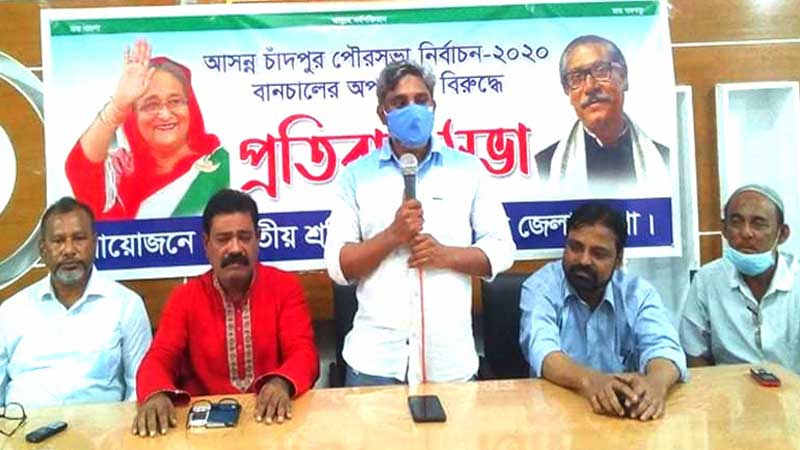 চাঁদপুর পৌরসভা নির্বাচন বানচালের অপচেষ্টার বিরুদ্ধে প্রতিবাদ সভা করেছে জাতীয় শ্রমিক লীগ চাঁদপুর জেলা শাখা। ১৭ সেপ্টেম্বর বৃহস্পতিবার বিকেলে জেলা আওয়ামী লীগ কার্যালয়ে এই প্রতিবাদ সভা অনু্ষ্িঠত হয়। সভায় প্রধান অতিথির বক্তব্য রাখেন চাঁদপুর জেলা ছাত্রলীগের সাবেক সভাপতি এবং ফরিদগঞ্জ উপজেলা পরিষদ চেয়ারম্যান অ্যাড. জাহিদুল ইসলাম রোমান।