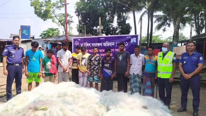 চাঁদপুরে নিষেধাজ্ঞা অমান্য করে ইলিশ নিধনের অপরাধে ১০ জেলে আটক