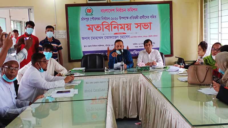 আসন্ন চাঁদপুর পৌরসভার নির্বাচনকে সামনে রেখে মেয়র ও সংরক্ষিত মহিলা কাউন্সিলর প্রার্থীদের সাথে জেলা নির্বাচন কর্মকর্তার মতবিনিময় অনুষ্ঠিত হয়েছে।