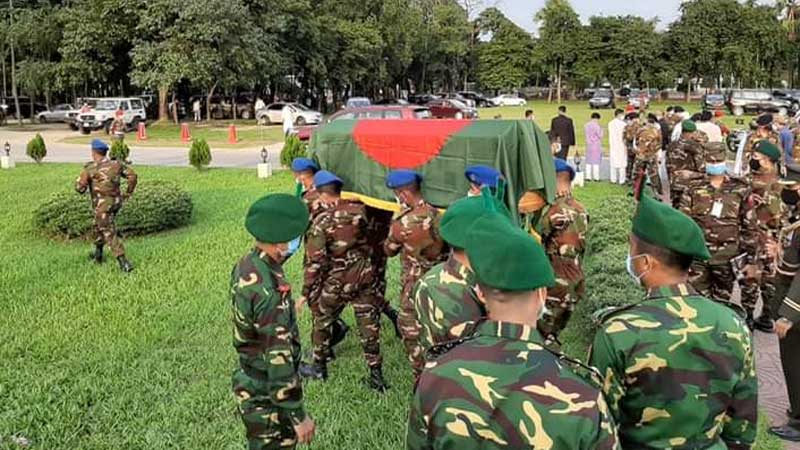 তিনি জানান, বাদ আছর ক্যান্টম্যান্ট কেন্দ্রীয় জামে মসজিদ প্রাঙ্গনে জানাজা অনুষ্ঠিত হয়। এরপর সশস্ত্র বাহিনীর গার্ড অব অনার, রাষ্ট্রপতি, প্রধানমন্ত্রী, সেনাবাহিনীর শ্রদ্ধা নিবেদনশেষে তার মরদেহ বনানী বুদ্ধিজীবী কবরস্থানে দাফন করা হয়েছে।