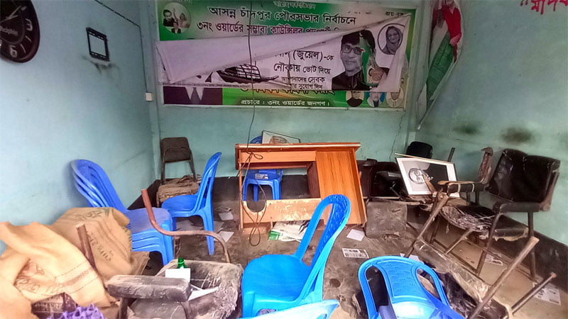 পুরাণবাজারে ওয়ার্ড আওয়ামী লীগের অফিস ভাংচুরে এলাকায় উত্তেজনা