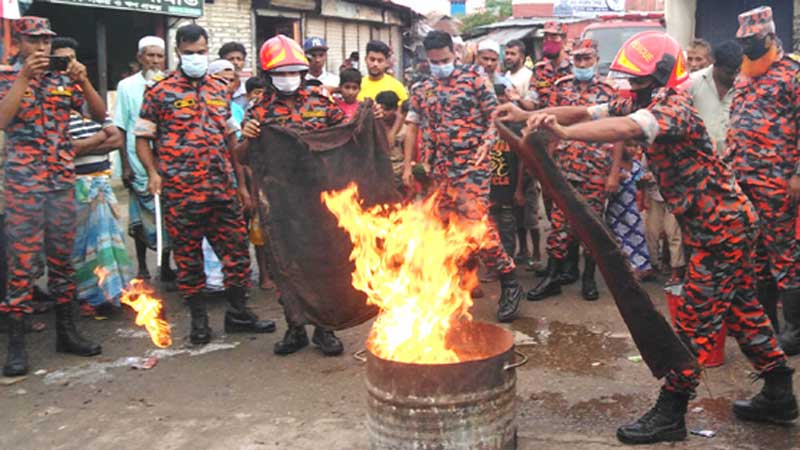 পুরাণবাজারে জনসচেতনতায় ফায়ার সার্ভিসের মহড়া
