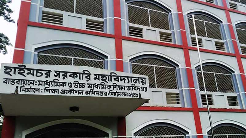 চাঁদপুর জেলার হাইমচর উপজেলা ঐতিহ্যবাহী বিদ্যাপীঠ হাইমচর সরকারী মহাবিদ্যালয়ের একাদশ শ্রেনীতে স্বাস্থ্য বিধি মেনে চলছে ভর্তি কার্যক্রম। হাইমচর সরকারী মহাবিদ্যালয়ের ৩ বিভাগে ৯শত শিক্ষার্থী ভর্তিও সুযোগ রয়েছে। হাইমচর মহাবিদ্যালয়ের মানবিক শাখায় ৩০০ আসনে ভর্তি হয়েছে প্রায় ৭৬ শিক্ষার্থী, বিজ্ঞান শাখার ৩০০ আসনে ৮০ শিক্ষার্থী, ব্যবসায়ী শাখায় ৩০০ আসনে প্রায় ১৮০ জন শিক্ষার্থী ভর্তি হয়েছে। এ কার্যক্রম চলবে আগামী ১৭ সেপ্টম্বর পর্যন্ত।