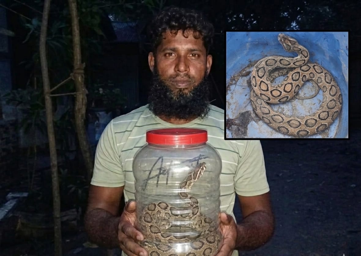 মতলব উত্তরে রাসেল ভাইপার আতঙ্ক, কামড়ের পরও সাপ ধরে বাড়িতে যুবক